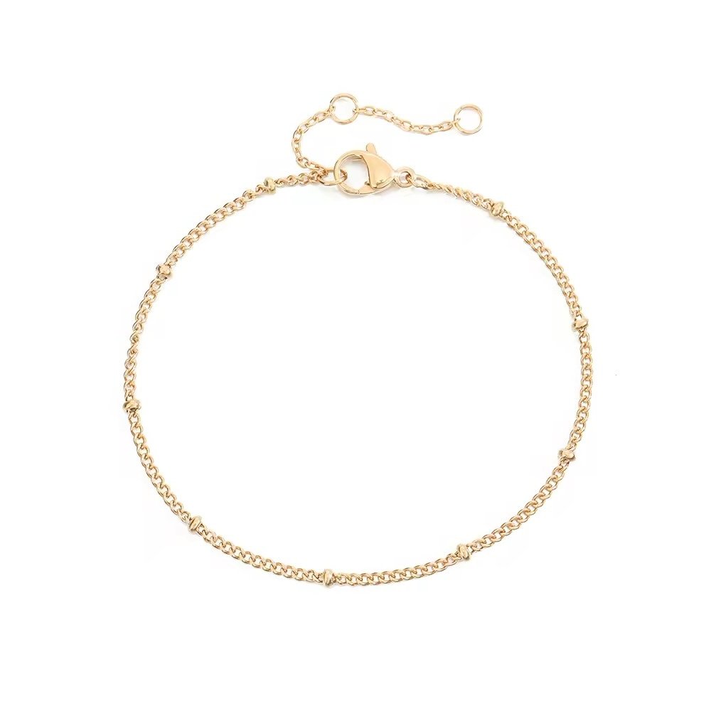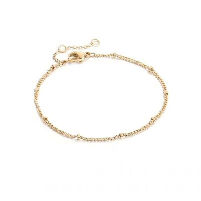 Subtiele enkele armband met kleine bolletjes. Superleuk te matchen met onze satijnkoord armbandjes.