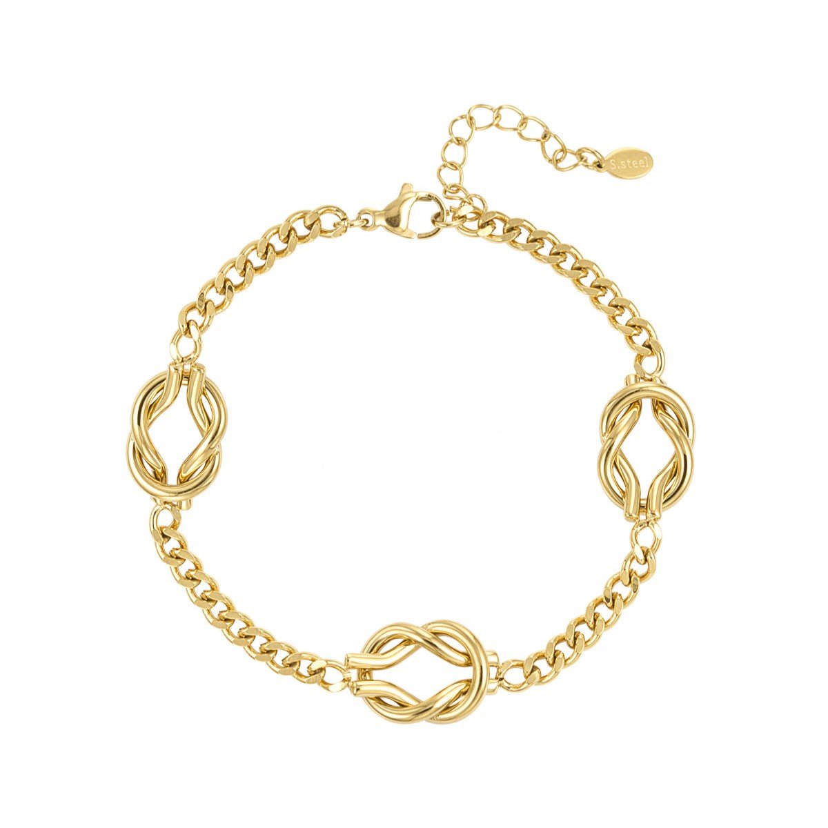 Supermooie, fijne schakelarmband met drie knoop-details.