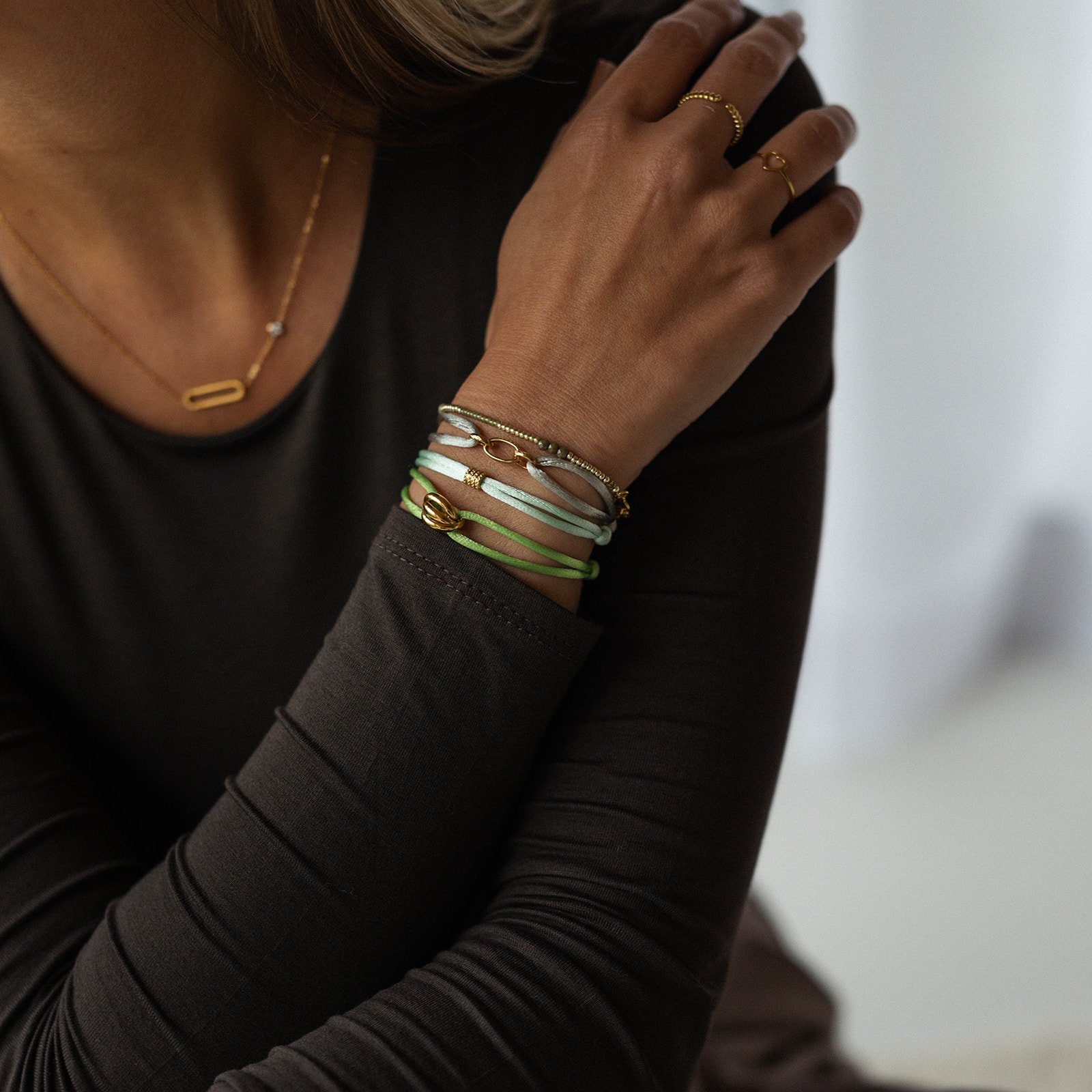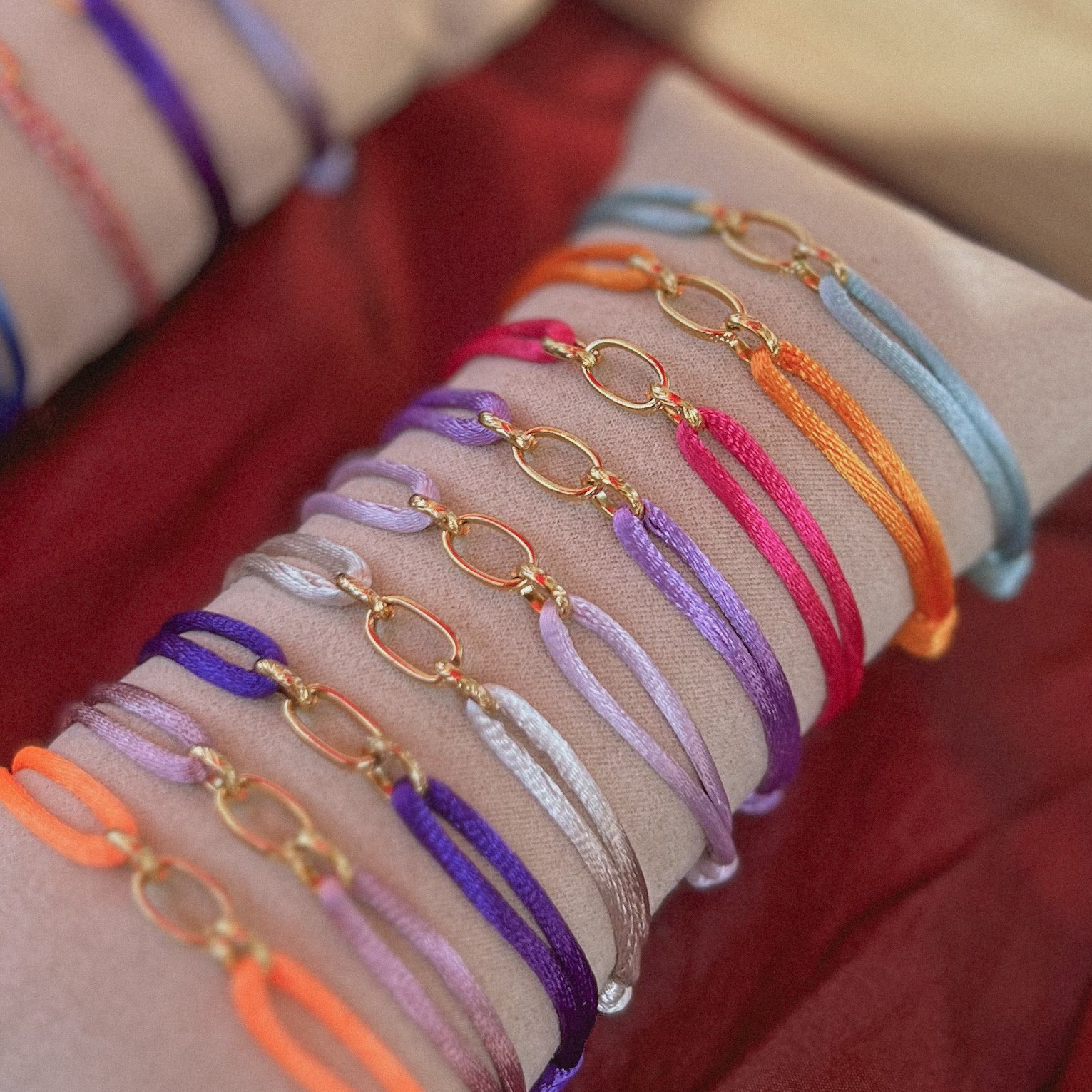 TIP: Combineer deze armband met onze andere satijnkoord-armbanden en maak er een gezellige armbandenparty van!